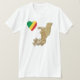 A heart shaped Congolese flag is placed next to a relief map of Congo-Brazzaville on this distinctively patriotic t-shirt.