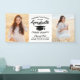 Add a personalised touch to college or high school graduation party decorations with this black and white custom photo banner. Design features a plain white background with black mortar board, stylish modern typography, hand written style script calligraphy, and 2 photos of the graduate, such as senior pictures or images from the commencement ceremony. All text is simple to customise. This party sign is an elegant way to celebrate the special day. Congratulations to the graduate!