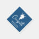 Personalised classic blue and white napkins for his graduation party party featuring a silhouette illustration of a male graduate in his cap and gown, "Congrats" in a stylish white script and his name and class year in simple modern white typography.