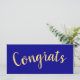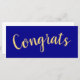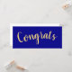 This festivetdesign features large centred "Congrats" written in festive, elegant warm yellow script text. The background of this modern minimalist design is deep rich royal blue.