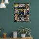 Congratulate your graduate and create a photo memory display poster print for their graduation party utilising this easy-to-create photo collage with 66 pictures through the years. The design features the title CONGRATS GRAD in a modern hand lettered brush stroke calligraphy typography accented with graduation cap and your custom text in your choice of colours (shown in white on black) you can change to school or party theme colours. OPTIONS: The sample is shown in a 27x33" size on Value Paper (Matte)--other sizes and paper quality or canvas, Digital Download file for local printing or to transfer the design to another product like a foam board, banner, tapestry, etc. are available on the ordering page. RESIZING TIP: Use the CHOOSE YOUR SIZE section below "Standard Sizes" if uneven borders occur and click the UNLOCK icon first (looks like a chain link) before entering the new width and height dimensions. Adjust the new dimensions proportionately by adding or subtracting approximately the same number of inches on both from the original size (you may have to adjust incrementally to achieve equal outside borders). ASSISTANCE: For help with design modification or personalisation, colour change, resizing, transferring the design to another product or you would like coordinating items, contact the designer BEFORE ORDERING via the Zazzle Chat MESSAGE tab or email makeitaboutyoustore@gmail.com.