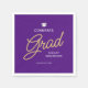 Simple and modern graduation napkin in purple and gold. The design features the word "grad" in elegant gold handwriting script against a purple background. Personalise these Grad party napkins with the name and year of the graduate.