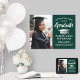 Add a personalised touch to a college or high school graduation celebration with a custom photo dark green and white 18"x24" poster. The picture and all wording on this downloadable sign template are simple to customise, and colours can be changed with the Zazzle design tool. The design features a faux foil mortar board cap, elegant classic typography, stylish modern calligraphy, and one photo of the graduate, such as a senior picture or image from the commencement ceremony. Please note that silver is printed colour, not foil. This printable graduation poster is an elegant way to welcome friends and family to a special day celebration. Congratulations to the graduate!