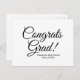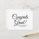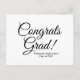Congrats grad black and white custom classic script text school and class year graduation postcard.