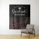 Send off your grad in chic style with this black and rose gold confetti graduation backdrop! The design features "Congrats to Our Graduate" in flowing white script, a rose gold grad cap, and personalized fields for the graduate's name and school above a cascade of shimmering rose gold confetti dots on a sleek black background. Customize all text for a glamorous celebration centerpiece. Perfect as a photo wall, dessert table, or party focal point.
