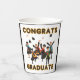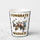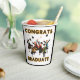 These cups design features the words "Congrats Graduate" with Studly print font plus grey coloured letters yellow outline showcasing students celebrating after a graduation in this education theme. All cups come in a set of eight or more and holds 8 oz great for birthday parties, summer picnics, and events. All plates are FDA approved for food contact and keeps beverages warm or cool lids optional printed in USA.