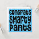 Say congrats loud and clear in fun style to the grad or anyone to be congratulated with this large bold typography Congrats Smarty Pants in a black quirky font with heart motifs. Easily personalise with your message on the reverse. You can also change the blue background to another colour if you wish as well as the font and colour for the greeting on the back via the Customise Further option.