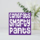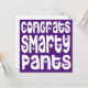 Say congrats loud and clear in amusing style to the grad or anyone you want to say well done to with this large bold typography Congrats Smarty Pants in a white quirky font with heart motifs on a purple background. Easily personalise with your message on the reverse. You can also change the purple background to another colour if you wish as well as the font and colour for the greeting on the back via the Customise Further option.