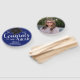 Fun royal blue background with black mortarboard and script text. Reads "Congrats to our Grad" Year of graduation option with custom name. Back of fan has a full cover photo option. All text can be changed and adjusted.