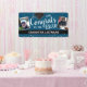 Big Bold Type Congrats to Our Grad any year celebration banner. All Text is unlocked and adjustable. Just use the customise it template options. Great for drive by parades, yard parties, or just to keep up all summer long to show your student how proud you are of their fabulous accomplishment! Two big photo options. Faux silver foil elements used in the design.