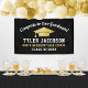 Congratulate your graduate in style with a modern personalised graduation banner sign, featuring their class year with gold coloured grad cap, and sporty custom text for the grad's name, school, and class year. Black, white, and gold colours can be customised to match your party colours.