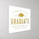 Modern graduation poster featuring bold gold foil lettering with a white background. The design features a gold foil graduation cap with the phrase "Congrats to our Graduate". Personalise the gold foil graduation sign by adding the graduate's name, school name, and graduation year. For a more custom look, change the background to your school colours. The foil graduation poster is perfect to use for your high school or college graduation party!