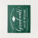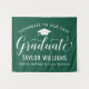 Honour your grad with this rich green graduation party backdrop! The design features "Congrats to Our Graduate" in flowing white script, a white grad cap icon, and personalised fields for the graduate's name and school on a deep green background. Customise all text to match your school spirit. A festive focal point for photo walls, dessert tables, and celebration entrances.
