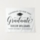 Elegant graduation party backdrop sign congratulates and celebrates your grad in style! Design features a grad cap, "Graduate" in script, and modern custom text that can be personalised with the graduate's name and school. Black and white colours can be customised.