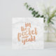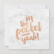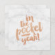 Greeting card to congratulate someone who graduated with the quote: 'In the pocket!'. With copper coloured hand lettering and a trendy eighties marble background.