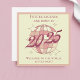 Retro Vintage-style greeting card for a new born baby featuring a disco ball with a splash of light pink tones and a groovy vintage "2024" script on a beige background.