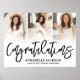 This horizontal graduation sign features three photos at the top, fading into a white gradient toward the bottom for a clean and modern look. “Congratulations” is displayed prominently in large handwritten script, with the graduate’s name, “Class of 2026,” and school shown below in classic black fonts for a polished and readable design.