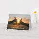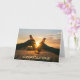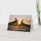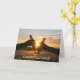 There are all sorts of occasions to send a congratulatory greeting card, and this one fits for almost any occasion! It features two people touching their drink bottles together in front of a beautiful, glowing sunset. The simple text at the bottom says "Congratulations!" The text inside the card says "You deserve it". Both of the text fields may be easily changed to anything you'd like. This card works especially well for a retirement party.