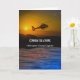Congratulations on Becoming a Helicopter Group Captain, paper greeting card with a dramatic scene of a helicopter flying over water with hills in the background. The sun is peeking through a hazy sky. Customise the text on the cover and inside as desired. Art, image, and verse copyright © Shoaff Ballanger Studios, 2022.