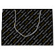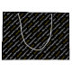 This black graduation gift bag has a text template you can edit. You can change the faux (not foil) gold text to show your graduate's name. The white text shows the year the student is graduating (shown: Class of 2024) and a custom message (shown: Congratulations). Congratulations and Class of 2024 are in an elegant script, but the graduate's name is not in a script. The text forms a pattern of the graduation gift bag.