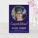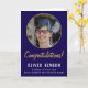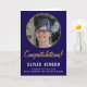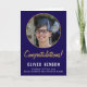 Congratulations Simple Blue Graduate Photo Graduation Card. Elegant and simple design with golden script and custom photo on a blue background. Add your photo and message for the graduate inside the card.