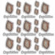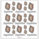 Twenty-one photos of a slice of a brown agate geode in two sizes are scattered across this sheet of stickers with nine "Congratulations" texts. These stickers can be replaced with your own cutout photo of a flower to make personalised stickers or the words can be changed to your own message. If you need help personalising, please contact me at jen@jenaleefamilystorykeeper.com