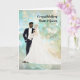 Congratulations card for a mixed wedding. The bride is white and is wearing a long white gown, and the groom is black, wearing a black tux. The background is