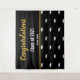 This black photo backdrop has a pattern of white graduate's caps in the background. There's display text you can personalise with a custom message (Shown: Congratulations), the year the class is graduating, and the school's name. The faux gold script is an artistic rendering. (It's not made of foil.)