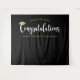 Send off your grad in luxe style with this horizontal black and gold graduation party backdrop! The design features "Class of" in gold lettering, "Congratulations" in flowing white script, a gold grad cap, and a personalized school field on a rich black background. Customize all text for a glamorous celebration centerpiece. Perfect as a photo wall, dessert table, or party entrance focal point.