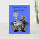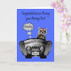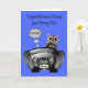 Congratulate your homeboy on passing his driving test with a racoon driving a car with exhaust coming out the back and sweet written on the license plate. The car is from J. Rett Grapics