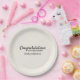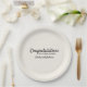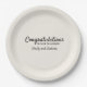 Simple "Congratulations on your engagement" paper plates for the engagement party.  Black text (customisable with Zazzle's design tool) on a cream/white (also customisable) background. Personalised with the names of the newly engaged couple.