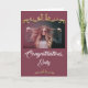 Elegant Congratulations Gold Ornaments Photo Graduation Card. Graduation card with a trendy script and gold ornaments on a burgundy red background. Add your photo and name on the front. Personalise the text inside the card or erase it.