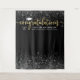 Elegant graduation party backdrop sign celebrates your grad in style! Design features a grad cap, "Congratulations" in modern faux gold foil script, and modern custom text that can be personalized with the graduate's name, class year, and school. Includes a border of sparkling silver and white confetti. Black background color can be modified.