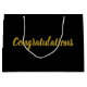 Congratulations Gold Script Elegant Text on Black Large Gift Bag