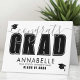 Celebrate this special milestone with a stylish and timeless graduation card. The front features "Congrats Grad" in elegant grey script and bold black typography, creating a striking and celebratory design. Below, there's space to personalise the card with the graduate’s name, school, and "Class of 2025" (or any year), making it a thoughtful keepsake. Two graduation cap icons add a festive touch to complete the look.