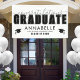 Designed for versatility, this banner works well as a backdrop for photos, a party entrance display, or a decorative focal point. The overall black and white look keeps it timeless and sophisticated, but all colours—including the text and cap icons—can be customised to match school colours or personal preferences. A stylish and memorable way to honour the graduate’s hard work and achievements!