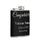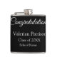 The flask itself is fine. It’s a cheap flask, obviously bought in bulk, however am prepared to overlook that. Given that it is a personalized item, I would have liked to have seen gift boxing instead of the generic packaging. Terrible printing, and/or quality. It’s a cheap, tacky vinyl. It is not cut straight and is also applied in a way that it is overhanging the bottom, causing the glue to catch on items and it will eventually roll and tear, damaging the wrap.