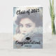 Custom congratulations greeting card featuring a photo of the graduate, a white overlay, gold glitter corner decoration, the class year, a graduation cap, and their name.