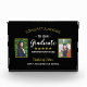 Congratulations To Our Graduate. A simple custom 2 photo and typography design to celebrate the achievement of a loved one who has graduated from high school or college. Replace each image with a vertical picture of the graduate. The white and gold text can be customised and personalised with the name and class of the graduate and their high school or college. If you are not happy with the handwritten and script fonts, you can change them using the Design Tool. You can also change the font colour and black background colour. The special celebration design is yours to customise and personalise as you wish.