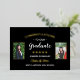 Congratulations To Our Graduate. A simple custom 2 photo and typography design to celebrate the achievement of a loved one who has graduated from high school or college. Replace each image with a vertical picture of the graduate. The white and gold text can be customised and personalised with the name and class of the graduate and their high school or college. The special celebration design is yours to customise and personalise as you wish.