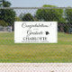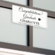Fully customisable black text, white solid plain background. With one graduation cap topper.