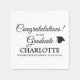 Fully customisable black text, white solid plain background. With one graduation cap topper.