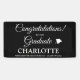 Fully customisable white text, black solid plain background. With one graduation cap topper.