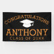 Celebrate the graduate with a custom banner. Personalize the banner and hang it up to make an eye-catching graduation party decor. You can also hang it at home or at an event. Make sure to change any colors and other design elements in the advanced design area.