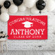 Celebrate the graduate with a custom banner. Personalize the banner and hang it up to make an eye-catching graduation party decor. You can also hang it at home or at an event. Make sure to change any colors and other design elements in the advanced design area.