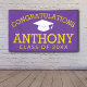 Celebrate the graduate with a custom banner. Personalize the banner and hang it up to make an eye-catching graduation party decor. You can also hang it at home or at an event. Make sure to change any colors and other design elements in the advanced design area.