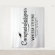 Modern graduation Tapestry featuring bold white lettering with an black background. The design features a white graduation cap with the phrase "Congratulations ". Personalise navy graduation banner by adding the graduate's name, school name, and graduation year. For a more custom look, change the background to your school colours. The graduation poster is perfect to use for your high school or college graduation party!