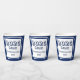Design features a navy-blue background to a white rectangular shape bearing the text you supply which is featured in a navy-blue font. Design is displayed on both sides of cup. Each side bears a different bottom message. Designed to coordinate with the "High School Graduation Party" collection. Available in a variety of colors.