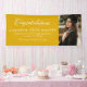 Congratulations to the graduate! This yellow graduation party banner features a place for a photo of the grad along with a script text "congratulations" and custom text that can include name, school, year and future plans. Makes a great graduation sign to celebrate your senior and works for a high school graduate or college graduate. The default colour of this graduation banner is a golden yellow, but more colours are available in the collection by Lea Delaveris Design.