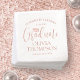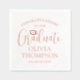 Add an elegant personalised touch to a college or high school graduation party with pink and white custom embossed foil paper napkins. All text on this template is simple to personalise. The rose gold real metallic foil design features a mortar board cap, stylish classic typography and modern script calligraphy. These unique napkins add an elegant customised touch to celebration decorations. Congratulations to the graduate!